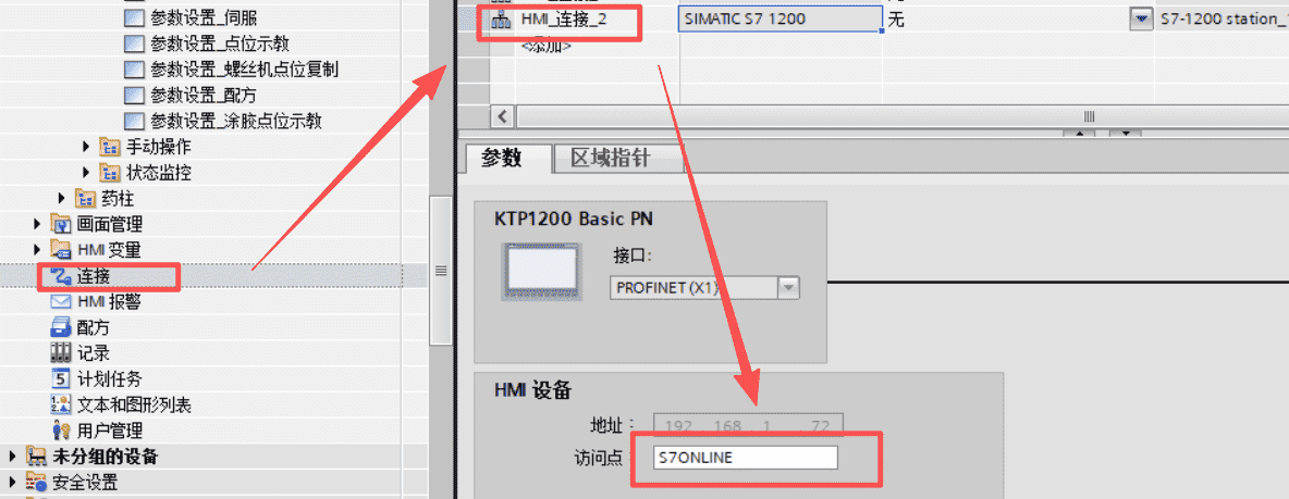 先选择plc中触摸屏的对应访问点